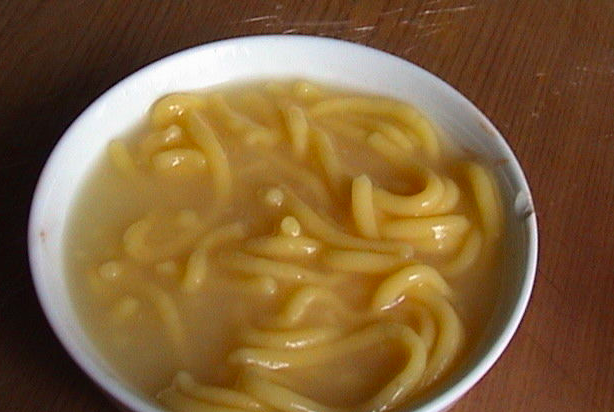 在夏季,滿族同胞喜食“酸湯子”,其制法是:用玉米發(fā)酵面團(tuán)制成面條或面片,直接甩入湯鍋中制成。操作步驟是將玉米浸泡磨成水面,用布濾去渣滓,細(xì)面入缸發(fā)酵至微酸,然后從手指上戴的漏斗形湯套中擠出長條,下沸水鍋中稍煮,再盛入碗內(nèi)。也可將發(fā)酵后的面團(tuán)加糖攪成糊狀,用勺舀從鍋沿自然流入鍋中間,成牛舌狀,也稱牛舌餑餑。食用時(shí)略帶酸味,味美可口。
