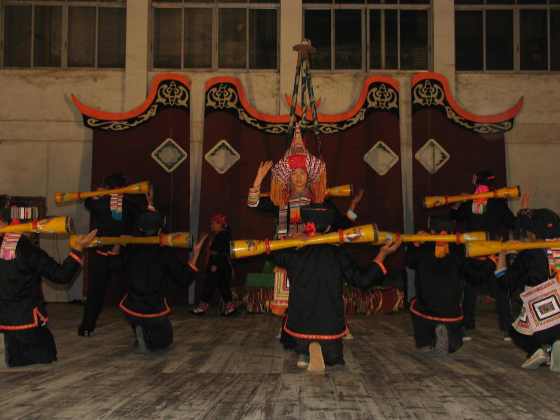 瑤族人民在節(jié)日慶典活動(dòng)上用民族樂器演出(劉軍攝)
