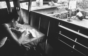 從前的“朵薩拉”是用芭蕉葉做的,現(xiàn)在有紙了,就把字寫在紙上,再用芭蕉葉卷起,用細篾絲捆扎好(因為在芭蕉葉上寫字實在不好寫,就做了一些改進)?!岸渌_拉”里裹寫著的是各家各戶賧奉物品的姓名、清單、及賧奉人的愿望,老人們把10個“朵薩拉”捆成一捆,分發(fā)給來自全壩子14個緬寺的19個大佛爺和137個小和尚。這次全村共賧奉了3059份物品,每個佛爺兩捆“朵薩拉”,小和尚一捆,剩余的全奉給緬寺。
