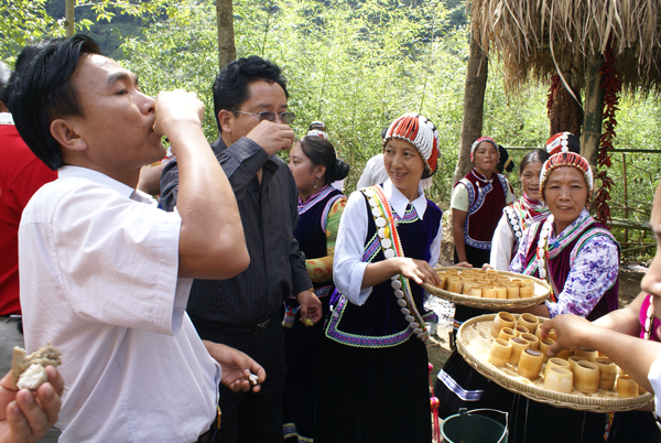 吃飯時(shí),主婦要先給老人、小孩盛飯,再盛給丈夫,自己最后吃;在吃飯時(shí),要不停地給老人、小孩夾菜、添飯、舀湯;如有客人一起共餐,主婦要先給客人,并不間斷地給客人夾菜、添酒。傈僳族還有許多嚴(yán)禁貪食、暴食、獨(dú)食的飲食禁忌,他們有許多諺語都是辛辣諷刺貪食、暴食、獨(dú)食之徒的,如“漢子因榮譽(yù)而死,饞人因好吃而亡”“獨(dú)食者噎食,不合群者憋死”等。