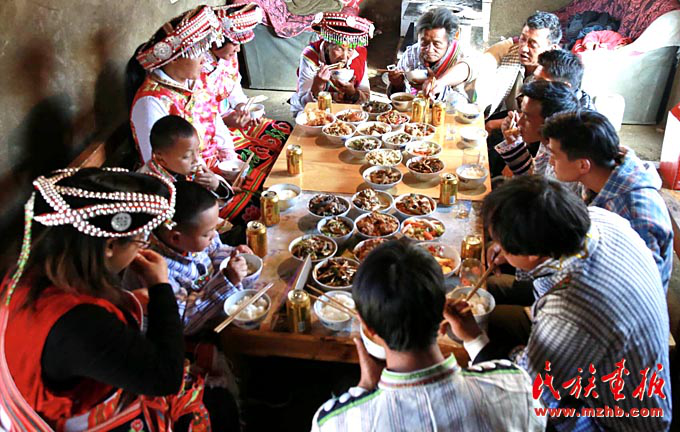 “過去我們一家吃除夕團(tuán)圓飯,有點(diǎn)肉就不錯(cuò)了,哪會(huì)有如此豐盛的宴席。你看如今這滿桌子十幾道菜,吃不完、喝不完,全靠黨和國家的政策好啊?!痹谡劦酱汗?jié)的變化時(shí),云南省維西傈僳族自治縣保和鎮(zhèn)臘八底村的蜂大興深有體會(huì)。