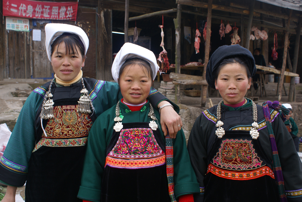 水族女性服裝以盛裝最為典型。主要構(gòu)件有帽、帕、衣、褲( 裙) 、圍腰、鞋及頭飾等。頭飾有銀角釵、銀簪、銀蓖、銀花簪、發(fā)箍簪、銀梳;胸飾銀項(xiàng)圈、銀壓領(lǐng)、銀鏈;戴手鐲、銀戒指;腰飾有吊牌(針線筒) 等。背帶、圍腰和鞋子則滿繡居多,上衣主要集中繡在口、角、邊、坎肩等處。褲子主要集中在褲腳處。水族服飾式樣在不同地區(qū)雖有差異,但在服飾色彩的格調(diào)上基本趨同,主要以青、藍(lán)、黑、綠為主。大部分地區(qū)主要是青、藍(lán)兩色,中和、三洞、水龍一帶以藍(lán)、綠為主。一些地區(qū)的水族服飾式樣因受布依族、苗族、侗族、漢族服飾影響較多,已逐漸改變了原傳統(tǒng)服裝樣式,上裝的坎肩、袖臂的“欄干”花圖案已吸收了苗族、布依族、侗族或漢族的樣式,衣服的長(zhǎng)度也逐漸變短,不像水龍、中和一帶較大程度地保留著原樣。