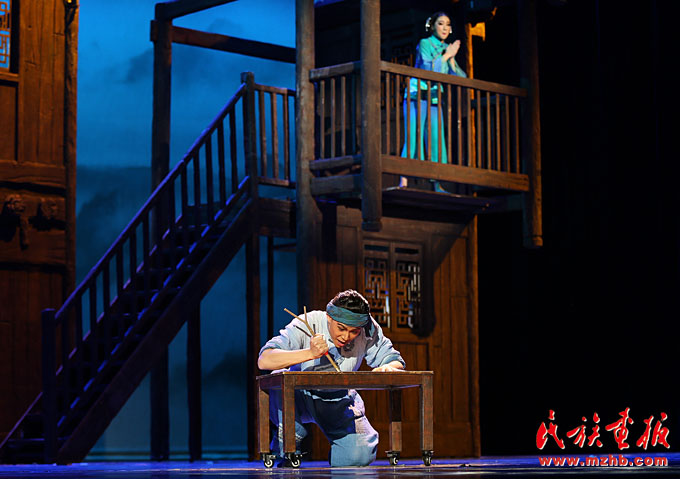 2017年12月28日,來自貴州的首部水族題材舞劇《木樓古歌》在民族劇院上演。舞劇中弘揚的至純至善的品質(zhì)和捍衛(wèi)家國尊嚴的勇氣、跌宕起伏的劇情和演員們嫻熟到位的表演以及神秘新鮮的民族文化符號,都深深感染著首都觀眾?!赌緲枪鸥琛酚酶哌h的立意和高超的藝術(shù)水準(zhǔn)為北京歲末的演出畫上了圓滿的句號。