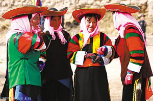 隨著時代的更替,土族女性的服飾發(fā)生了很大變化,有的傳統(tǒng)服飾已消失,有的服飾經(jīng)過推陳出新,重放光彩。如舊時的繡花高領(lǐng),如今變成直翻兩用領(lǐng);蓋在“扭達(dá)”上的長頭巾——“扭達(dá)爾秀巾”,變成了今日土族女性使用的短頭巾?,F(xiàn)今,廣大土族女性,不僅喜穿本民族服飾,而且還愛著時尚服飾,她們或使土族服飾時裝化,或使時裝土族服飾化,豐富了土族的服飾文化。