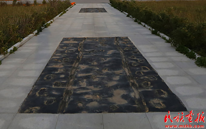 廣場上的足跡反映的是達斡爾人南遷時留下的腳印、馬蹄印、車轍印