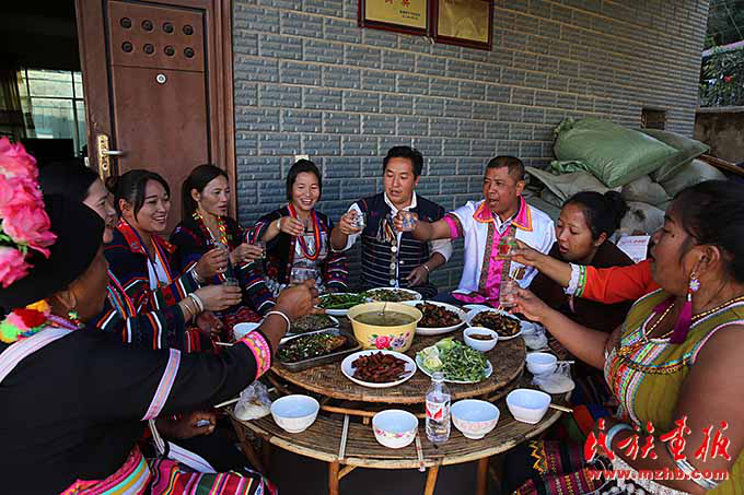 曼夕村60多歲的玉兒班老人說:“過去缺吃缺穿,盼望過節(jié)時能吃好吃的穿新衣服,現(xiàn)在日子紅紅火火,遇到好時光,希望能多活幾年?!辈祭首鍙棾〖墏鞒腥擞窨怖斕炫c她的幾個學生在一起過節(jié)吃飯,性情直爽的她高興地唱了起來:“我們團結(jié)一致,同住一個地球,同走一條路,共享一個太陽,我們手拉手,心連心,建設美好家園。黨的政策好,沒有共產(chǎn)黨就沒有我們幸福生活,共產(chǎn)黨政策像溫暖的太陽照耀我們,要過幸福生活就跟著共產(chǎn)黨走。”