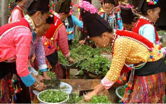 阿昌族有其獨(dú)特的飲食制作方式及進(jìn)餐習(xí)俗和飲食禮儀,傳統(tǒng)的飲食習(xí)俗大多還與宗教和習(xí)俗密切相關(guān)。