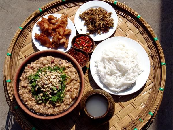 阿昌族還喜歡吃竹筍、竹蛆和蜂蟲(chóng)、蜂蛹等。竹筍的吃法有鮮竹筍、干竹筍、腌酸筍等。鮮竹筍肉嫩細(xì)香,可當(dāng)蔬菜,也可與肉、豆類等炒著吃。竹蛆是一種生在嫩竹中的蟲(chóng)蛹,色白個(gè)大,肉肥細(xì)嫩。有時(shí)一節(jié)竹子中有數(shù)百條,取出后用油炸脆,色澤金黃,撒點(diǎn)鹽而吃,是一種高蛋白鮮美食品。食用的蜂蟲(chóng)、蜂蛹主要有黃腰蜂、夜時(shí)蜂、草蜂等土蜂類的蛹和幼蟲(chóng)?;蛘ɑ虺矗愦嗫煽?,營(yíng)養(yǎng)豐富。