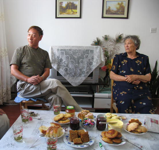 到俄羅斯族人家中作客或辦事,進(jìn)屋要敲門(mén),得到允許才能入內(nèi),進(jìn)屋要脫帽,坐在主人讓給的位子上,不能坐床,坐床認(rèn)為是很不禮貌的行為。來(lái)客不得隨便吸煙,吸煙須經(jīng)主人同意。俄羅斯人最隆重的傳統(tǒng)禮節(jié)是用面包和鹽迎接客人,象征著友誼和善意。來(lái)客須用刀子切下一塊面包沾少許鹽吃下后方可進(jìn)屋。這種禮節(jié)從前只用于迎接貴賓和新娘,現(xiàn)在也用于一般社交場(chǎng)合。