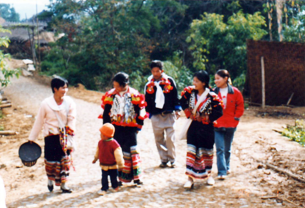 德昂族青年男女結(jié)婚前,都要先舉行認親儀式。屆時,男方的親戚如舅父、叔伯等陪同男青年到女方家,用帶去的酒肉糖茶等熱情地宴請女方家人,并分別贈送禮品給女方家庭成員。認親過后,女方就請卜卦人選定吉利的日子作為婚期,然后再通知男方家。男方要將彩禮于結(jié)婚前送達女方家(圖為德昂族女青年,1994)。