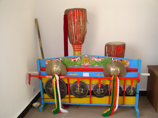 流傳于潞西縣三臺(tái)山德昂族的主要聚居區(qū)。鼓身長(zhǎng)約三尺,頭寬尾窄,兩頭都蒙有鼓皮。傳說德昂族在大遷徒中,“饒靜”部落是第二批上路的,為了趕上先行的“饒實(shí)”部落,鼓手不慎跌了一跤,將鼓砸成兩節(jié)。為了使鼓繼續(xù)發(fā)揮聯(lián)絡(luò)、娛樂和鼓舞人心的作用,他用石頭將切口磨平,又蒙上了一張皮。因此,兩面都能發(fā)出與原先的長(zhǎng)鼓完全不同的聲音。短鼓舞通常配合象腳鼓舞同時(shí)擊打。