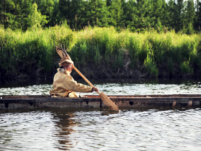 在鄂倫春族中間,還有另一種樺皮船賽的形式,即少年坐在樺皮船上,于靜靜的小河上拿棹板打水中游魚(yú),以打中魚(yú)的多少定名次,這類比賽也是饒有趣味性的。