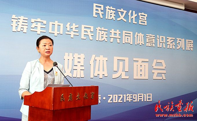 民族文化宮博物館館長陶穎介紹“鑄牢中華民族共同體意識系列展”相關(guān)情況。