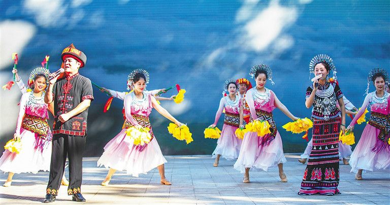 2021年白沙“啦奧門”山蘭文化節(jié)中的歌舞表演。李天平 攝