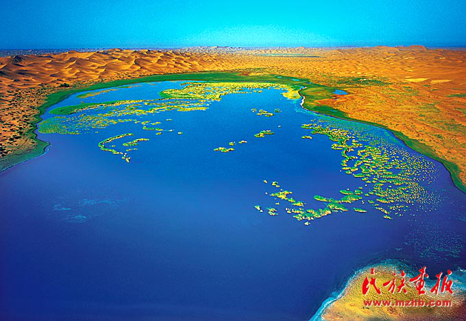 位于阿拉善左旗騰格里沙漠腹地的月亮湖,是沙漠深度旅游體驗地之一。