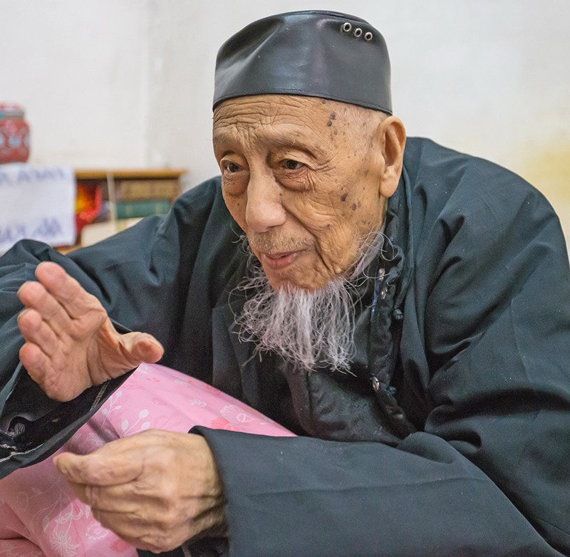 離這里不遠(yuǎn)的回民街深處一座陳舊的院落里,住著百歲老阿訇李殿君老人。老人已經(jīng)101歲,除了耳朵眼睛不太好,身板硬朗,思維清晰,說話聲音洪亮。聽到我們來探望,他起身坐起,打開了話匣子。