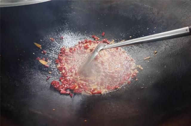 立即將剁成小塊的雞肉放入鍋中不停翻炒。