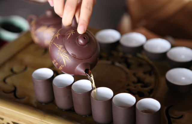 工夫茶是廣東潮州漢族人民傳統(tǒng)的飲茶風(fēng)俗。是禮賓待客的第一道習(xí)俗。今天,海外潮州籍華僑還以“工夫茶”作為認(rèn)祖追宗的標(biāo)志。
