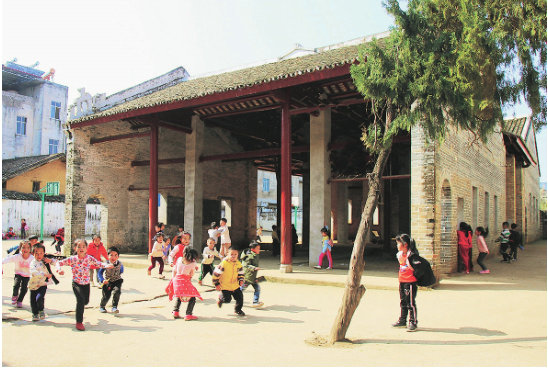 舊時(shí)的仙城書院,現(xiàn)已成為小學(xué)生的話動(dòng)場(chǎng)所 (藍(lán)炳培 攝)