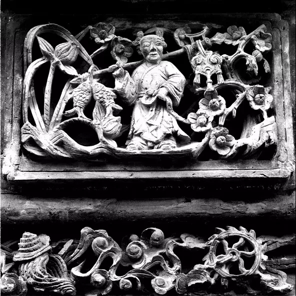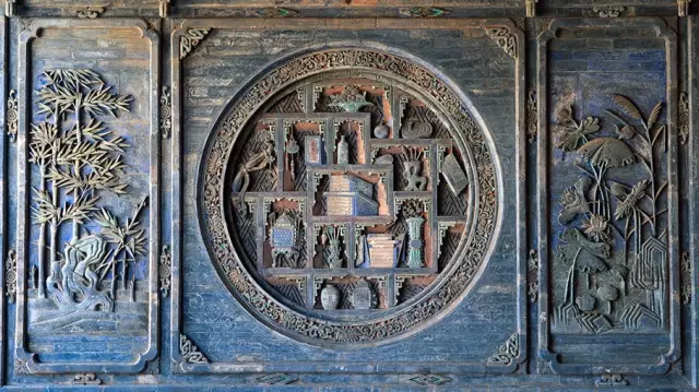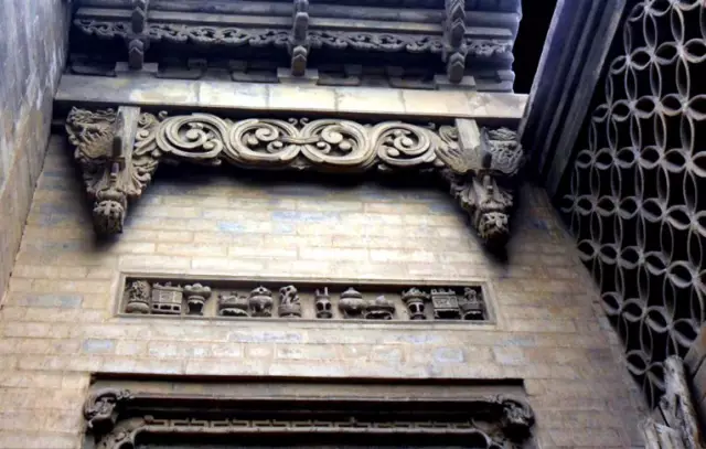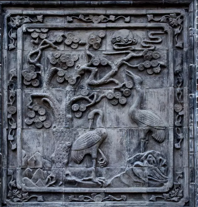 磚雕指在青磚上雕出山水、花卉、人物等圖案,是古建筑雕刻中很重要的一種藝術(shù)形式。