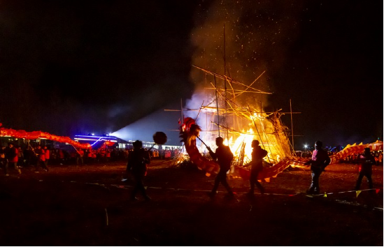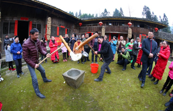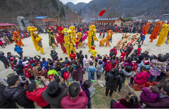 更具特色的要數(shù)正月十五趕毛狗子了。傳說毛狗子(狐貍的俗稱)喜歡偷雞吃,所以必須得趕走。趕毛狗這一天,親朋好友聚在一起,先用竹筒做成火把或用木梓油做成燈備用,再砍樹枝搭成棚子,放入草扎的毛狗子,堆放未破節(jié)的竹筒和火炮樹葉。待天黑,男女老少全部出動,在屋邊及路邊插上點(diǎn)燃的火把、燈,然后燒燃毛狗棚,這邊的人群發(fā)出“哦嗬”聲,那邊的人群高喊“趕毛狗子喲!”此時(shí),滿山遍野火光沖天,叫喊聲此起彼伏,震耳欲聾,熱鬧非凡。