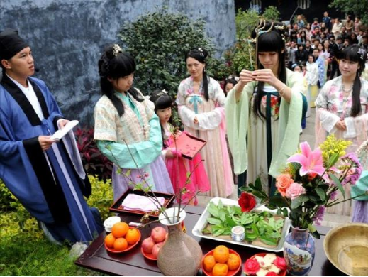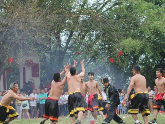 壯族花朝節(jié),是紀念百花仙子的壯族傳統(tǒng)民俗文化節(jié)日,流行于崇左市寧明、龍州等地,每年農歷二月初二舉行。節(jié)日里,男女青年從四面八方匯集在長有高大木棉樹的地方對唱山歌,在真摯的歌聲中贈花定情,拋擲繡球和互贈禮物。日落時分,人們按照傳統(tǒng)習俗,從四周把繡球向木棉樹高枝拋去,掛到木棉樹上,以求百花仙子保佑愛情永結。