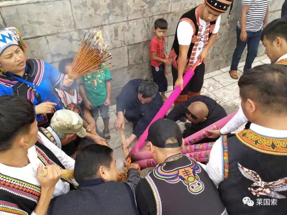 祭祖大典隆重、肅敬、莊嚴(yán)。儀式: 1、吹奏長(zhǎng)號(hào)樂、鳴禮炮,敬告天地東西南北中五方神抵;2、奏樂(長(zhǎng)號(hào)、噴吶),請(qǐng)彝族畢摩上香;3、奏樂(長(zhǎng)號(hào)、噴種),敬貢三牲,果品,圣水,豬頭,雞;4、請(qǐng)彝族畢摩撒五谷,念誦《散五谷詞》;5、彝族畢摩向祖先阿普駕幕行跪拜禮,恭誦《祭祖祈福經(jīng)》;6、請(qǐng)各地同胞代表恭誦《祭文》;7、請(qǐng)各位領(lǐng)導(dǎo)、各位來賓、各位朋友全體起立!向彝族祖先阿普篤幕及六祖行叩首禮:一鞠躬!再鞠躬!三鞠躬!禮畢!8、奏樂(長(zhǎng)號(hào)、噴吶),恭請(qǐng)貴賓敬獻(xiàn)高香。