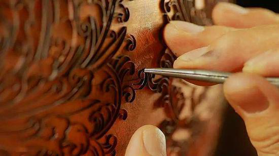 工藝美術(shù)大師米振雄堅(jiān)持“景泰藍(lán)首要的是手工藝美,從打胎到磨光,都必須是手工藝”??此銎z,是一種安靜的欣賞。大師一邊用手指甲蓋抵住紫銅絲,另一只手抓著鑷子,拉長、彎折、回旋。如何拿捏花樣的形狀、掰出弧度大小,全憑師傅一雙巧手。
