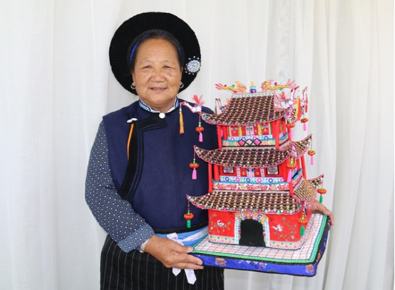 近年來,鶴慶縣高度重視民間文化遺產(chǎn)保護(hù)工作,甸南族刺繡作為民間特色文化遺產(chǎn)之一,得到較好的保護(hù)和傳承。近日,金墩鄉(xiāng)銀河村上曲江自然村71歲的老繡娘趙煥珍,經(jīng)過多次實(shí)地觀摩,邊做邊改,邊構(gòu)思邊計(jì)算,以繡花、梳花、牽花、飄花、釘花等多種刺繡方法,歷時(shí)10個(gè)多月,把縣城的地標(biāo)性建筑——云鶴樓按比例縮放,創(chuàng)作出了新的刺繡作品“云鶴樓”。