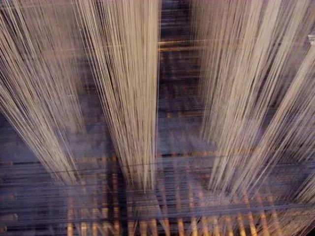 轉(zhuǎn)下曲:織工經(jīng)常必做的一項(xiàng)檢查。下到一米深的機(jī)坑,轉(zhuǎn)動下曲簽防止纖線斷裂和纏繞。