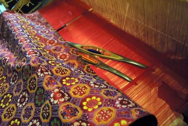 蜀錦其價(jià)如金主要體現(xiàn)在制作工藝上。要完成一件作品,從程序上說,主要需經(jīng)歷初稿設(shè)計(jì)、定稿、點(diǎn)意匠、挑花結(jié)本、裝機(jī)、織造等幾個重要過程。每一道程序又涉及到很多獨(dú)特的技藝。用蜀錦大花樓木質(zhì)機(jī)織造蜀錦,拽花工和織手須掌握多種技能。這些古代織造蜀錦的技能令人嘆為觀止。