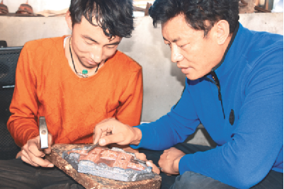 技藝上的登峰造極,次嘎把這一秘笈歸結(jié)成幾個(gè)平常的字眼:“興趣和堅(jiān)持”。從小受家族文化的熏陶,兩個(gè)兒子對(duì)傳統(tǒng)文化有著濃厚的興趣。薪火相傳也成了次嘎肩上的責(zé)任。20出頭的大兒子扎西拉達(dá)穿著白T恤,皮膚白皙、手指纖長(zhǎng)、陽(yáng)光帥氣,立志要子承父業(yè)。“父親告訴我即便是要做一名手工藝人,也不能放棄對(duì)文化知識(shí)的學(xué)習(xí),從小便把我送到內(nèi)地學(xué)習(xí)?,F(xiàn)在,我長(zhǎng)大了,該回來(lái)了?!?扎西拉達(dá)的話語(yǔ)堅(jiān)定。