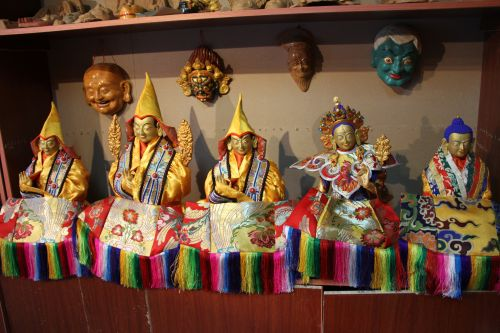 在普布次仁所在的公司里,有一個(gè)專門(mén)用來(lái)制作泥塑面具的房子,從外表上看去,它只是一個(gè)普普通通的藏式民居,但走進(jìn)其中,則別有一番天地。在房間里整齊擺放了大大小小的泥塑面具、佛像,這些手工藝品造型生動(dòng),每一件手工藝品仿佛都在訴說(shuō)著一個(gè)古老、動(dòng)人的故事。