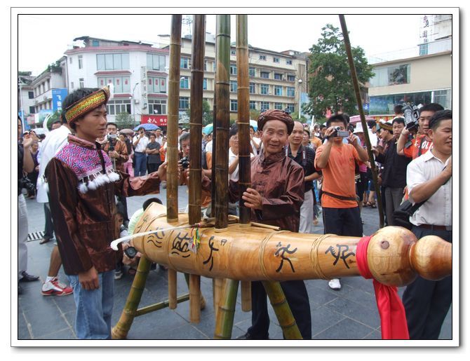 2008年,為慶祝北京奧運(yùn)會(huì)開幕,苗族著名蘆笙師傅梁炳光特制了一把高達(dá)10余米,重達(dá)240余公斤的蘆笙。這把號(hào)稱當(dāng)今蘆笙的王中王、世界蘆笙之最的蘆笙從備料到制作完成,梁師傅足足用了一個(gè)多月。這把蘆笙在北京奧運(yùn)會(huì)期間曾在融水民族廣場展示,萬人矚目。
