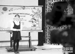 停課不停學,由寧夏回族自治區(qū)教育廳制作的“空中課堂”名師專遞課程日前正式上線,學生可以在家中通過手機、電視、電腦等進行學習。圖為銀川市金鳳區(qū)第一回民小學教師楊玉燕在錄制“空中課堂”三年級英語課程。