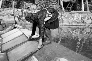占里村共有182戶827人,這里的侗族古法造紙術(shù)源遠(yuǎn)流長(zhǎng),全村從事造紙業(yè)的就有170戶,占總戶數(shù)的93%。這里的造紙業(yè)依然保留著原始的家庭作坊和世代傳承的手工制作方式。這種古法造紙技藝以構(gòu)樹皮為原材料,添加獼猴桃藤、野棉花根,經(jīng)過水浸泡、石灰腌制、蒸煮、碓爛、攤曬、燒堿漂白、打漿、瀝水、抄紙、烤干等72道工序,最終制成白皮紙。