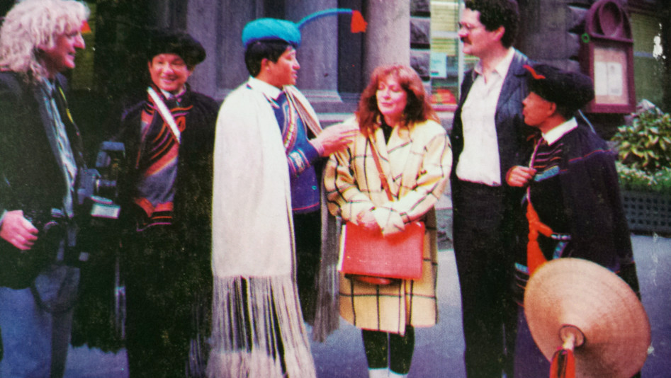 ▲上世紀(jì)90年代,沙馬拉毅(左三)參加國際會議。 沙馬拉毅供圖