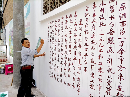 進士后裔陸華岳老師在蓮湖公園冒著嚴寒創(chuàng)作 (蘭天明攝影)