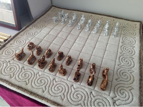 蒙古象棋,蒙語稱為“沙塔拉”,蒙古象棋傳統(tǒng)雕刻技藝在蒙古民族文化寶庫中占有重要地位,沿用手工雕刻方式,工藝精湛,已被入選為國家級非物質(zhì)文化遺產(chǎn)保護(hù)名錄。阿巴嘎旗民間藝人阿敖日布創(chuàng)作出的“蒙古象棋”被編入了《北京國際藝術(shù)精品博覽》一書、“漢馬刮板”獲得國家外觀設(shè)計專利。2005年,阿敖日布被內(nèi)蒙古自治區(qū)級“民間工藝美術(shù)大師”稱號。在2008年北京“中國故事”文化展示活動中,他首次代表內(nèi)蒙古向世人展示了自己的蒙古象棋雕刻藝術(shù)。