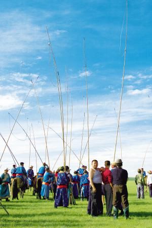 有些人和事是蒙古族所獨有的:迄今仍豎寫的文字,綜合了實用與建筑學(xué)美學(xué)原理的蒙古包,集合力量與技巧的套馬,歡樂盛會那達(dá)慕,蘊含生存哲學(xué)的搏克,與國際象棋同理的蒙古象棋,好聽的長調(diào)與馬頭琴,以萬物崇敬為核心理念的宗教文化……事實上,能夠讓草原持久保持綠色的內(nèi)因正是游牧文明的核心價值:和諧、包容、適度索取,樂觀、智慧、堅韌向前。這些內(nèi)涵可以從蒙古族的物質(zhì)和精神生活包括那達(dá)慕中得到答案。