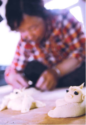 1、春節(jié)(過大年)來臨前,家庭婦女用白面捏制小狗、小貓、玉兔、魚娃娃、蓮花的面塑制品,上面點綴紅棗、花生等。以象征萬事如意,多福多壽、家庭和睦。