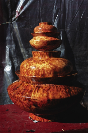 官員們使用的木碗,固然也非常注重外面的金銀寶石包裹,而木碗本身,也有一套非常固定的學(xué)問(wèn),盛開(kāi)水不裂,摔到地上不會(huì)破,不燙手不冰手,體輕而質(zhì)固,經(jīng)久耐用,可以爺孫相傳。用這種碗盛食,可以完全保持食物原味,吃酥油糌粑等油肉類食品猶為適宜。比之于一般瓷碗,是碗中上品。這種木碗一般都是選用一些稀有雜木的節(jié)或者根雕琢而成,除了材料本身,在加工過(guò)程中的工序也十分重要,必須要加工出來(lái)一些獨(dú)特的花紋,比如磷火紋,或豬鬃紋,或貓頭鷹眼紋等,有這種花紋的碗,就要格外名貴,比如這次普布次仁兄弟所制作的大型核桃木碗,全身均勻地布滿了貓頭鷹眼紋,所以才能賣出這么高的價(jià)格。在西藏很多地區(qū),都流傳著這樣一個(gè)諺語(yǔ):“一只上等木碗等于10頭牦牛?!?/p>