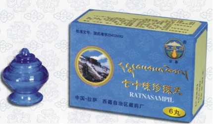 七十味珍珠丸成方于公元8世紀(jì),始載于藏醫(yī)巨著《四部醫(yī)典》中,本產(chǎn)品根據(jù)藏醫(yī)學(xué)原理,選用生長(zhǎng)在世界屋脊特殊生態(tài)環(huán)境下的天然稀有藏藥材,采用傳統(tǒng)配伍精制而成。本產(chǎn)品配方奇特、選料上乘、炮制特殊、做工考究、功能廣泛、副作用小,采藥、炮制、配方無(wú)不遵循古法,不得有絲毫虛假,從而保證了藥物神奇療效,經(jīng)一千多年的臨床實(shí)踐證明,本藥物主治:安神,鎮(zhèn)靜,通經(jīng)活絡(luò),調(diào)和氣血,醒腦開(kāi)竅。用于“黑白脈病”、“龍血”不調(diào);用途廣泛,無(wú)病服用具有滋補(bǔ)健身、提高身體免疫力等功能。