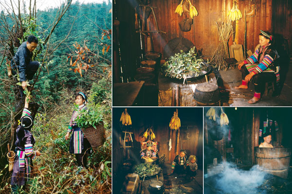 各地藥浴習(xí)俗不同,或每日洗浴,或擇吉日洗浴。由每戶最年長的男性上山采來追風(fēng)藤、半邊楓、九龍盤、血藤等中草藥,洗凈,捆成把或切碎放入大鐵鍋中用水煮沸,待煮出藥汁后,撈去藥渣,把煮好的藥水放入專門藥浴的大桶——“龐桶”中。浴者赤身入桶,在保持適宜溫度(一般為38度左右)的藥液中浸泡20-30分鐘。鍋中有煮好的備用藥水,可保證每位藥浴者浴時(shí)的溫度相同。在藥浴中,通過浸泡,讓藥汁慢慢地滲入人體的毛細(xì)血管、遍及全身,達(dá)到以浴治病的目的?,幾逵盟幩瓷?,不分男女老幼,全家皆洗,一家人輪流洗,水臟了就換,冷了再加熱。瑤族將傳統(tǒng)禮儀規(guī)范滲透到藥浴治療當(dāng)中,規(guī)矩是:先客后主,先小后大,先老后少,先男后女。