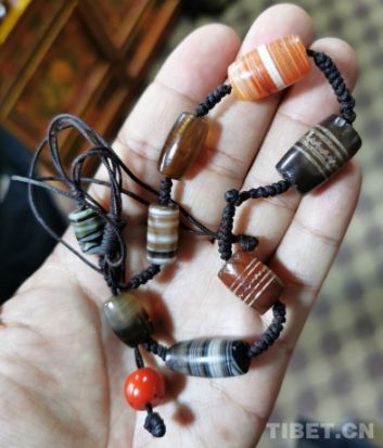 在藏語(yǔ)中,天珠被稱(chēng)為“瑟”。在普蘭邊貿(mào)市場(chǎng)中,并不是所有的商家都有天珠。但凡是有上好天珠的商家,必有很大的吸引力。在市場(chǎng)中,他們也充滿(mǎn)自信。我在市場(chǎng)中走訪了多家有天珠的商店,并簡(jiǎn)要總結(jié)了多數(shù)商家對(duì)天珠的認(rèn)定標(biāo)準(zhǔn)。在尼泊爾商家的眼中,天珠的質(zhì)量要看幾個(gè)方面。一是“石頭”的質(zhì)量,上好的“石質(zhì)”是好天珠的必要條件。他們?cè)跈z驗(yàn)時(shí),多用門(mén)牙上下撞擊天珠的不同位置,便可以分辨出天珠料子的好壞。在那里,我也遇到了幾位買(mǎi)天珠的僧人,其辨別過(guò)程中也使用了這樣的方法。二是包漿程度,一顆好天珠就要有相應(yīng)的歲月的痕跡,而包漿就是歲月長(zhǎng)短的最重要的代表。當(dāng)然,這也并非絕對(duì),因?yàn)榘鼭{的形成主要依靠人為的把玩,那些沒(méi)有相應(yīng)包漿但達(dá)到上千年的天珠在他們眼中依然很快便會(huì)被識(shí)別出。在尼泊爾的茶館中,一位當(dāng)?shù)氐牟刈迦罕娤蛭医榻B了一顆天珠,據(jù)說(shuō)有人曾用成都的一套房子來(lái)?yè)Q,但并未打動(dòng)主人,那顆珠子擺在我的面前,沒(méi)有所謂的包漿,但歲月形成的厚重感卻十分明顯。三是天珠的孔道,因?yàn)榭椎酪彩菤q月的見(jiàn)證者,一般孔道越是圓潤(rùn)便越具有價(jià)值。