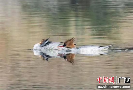 廣西荔浦市荔江流域首次發(fā)現(xiàn)國家一級(jí)保護(hù)動(dòng)物:中華秋沙鴨。張德林 攝
