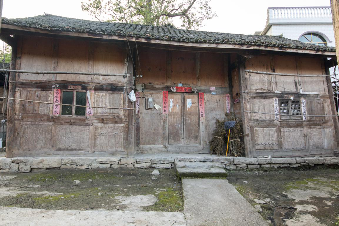 批林村傳統(tǒng)民居為全木結(jié)構(gòu)的吞口屋,常見為三間并列,上下兩層。第一層居中的房屋為堂屋,屋外壁內(nèi)縮一柱形成吞口。房屋底下還有一層壘砌平整的石基,用以將吞口屋與土層隔離,達到防潮防濕的目的。石基也隨著人們的踩踏,變得圓潤,與傳統(tǒng)建筑一起,成為了歷史的見證者之一。時間的沖滌,石基也開始泛起了亮黑色。