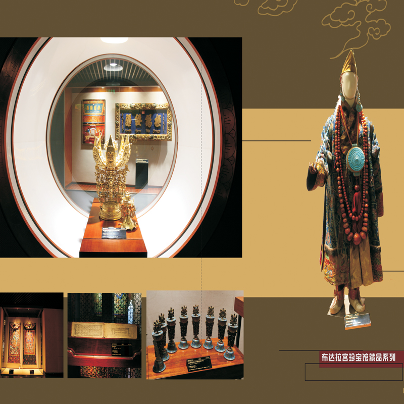 布達拉宮珍寶館展出宮藏文物200件左右,其中包括封誥、印鑒、禮品、文獻典籍、貝葉經(jīng)、佛像、唐卡、法器等。布達拉宮珍寶館有14世紀(jì)制造的“八瓣蓮花喜金剛壇城像”。2009年8月11日正式對外開放。