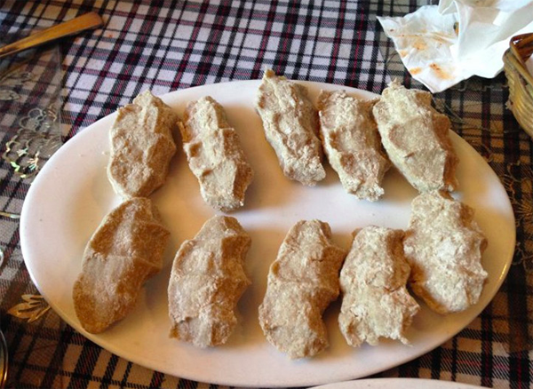 吃糌粑時(shí),碗里放上一些酥油,沖入茶水,添上炒面,用手?jǐn)嚢琛0钑r(shí),先用中指將炒面向碗底輕搗,以免茶水溢出碗外;然后轉(zhuǎn)動(dòng)著碗,并用手指緊貼碗邊把炒面壓入茶水中;待炒面、茶水和酥油拌勻,能用手捏成團(tuán),就可以進(jìn)食了。食時(shí)用手不斷在碗里攪捏,揉合成團(tuán),用手往嘴里送。藏族群眾吃飯一般不用筷子、勺子,只用手抓。