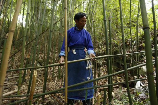 制作蘆笙大的工序有12道,再細(xì)一點(diǎn)有幾十項。如第一道是到山上去選竹子,拿尺子慢慢比劃,三拳的有多長,要很細(xì)心地選,確實(shí)可以用。取下來之后,第二道工序是拿到河邊去洗,用紗布搓。因?yàn)橹窆苡泻芏喟唿c(diǎn),關(guān)節(jié)處有很多毛,要很細(xì)致的把那些東西全搓掉。弄好之后用太陽曬,曬干曬白。第三道工序,就是取杉樹的木頭做笙斗,計劃好做三拳的是多少公分,四拳是多少公分。十二道工序,后面越學(xué)越復(fù)雜,每一道工序都很講究。